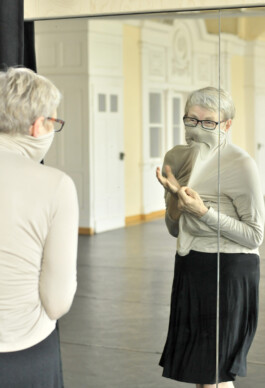 Textiles Material in seiner Qualität mit Potential des Faltenwurfs als 2. Haut des Körpers: Recherche mit Simone Demandt im Rahmen des Residenz-Stipendiums Flausen 2021, Fonds Darstellende Künste in Kooperation mit dem FITZ Stuttgart.