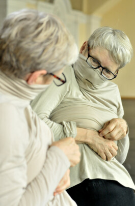 Künstlerische Recherche mit der Bildenden Künstlerin Justyna Koeke: Haut und Gewebe werden modelliert und als Kostüm getragen, mit Objektcharakter oder Partner*in mit besonders kreativen Eigenheiten hervorgehoben. Die gemeinsame Arbeit wurde ermöglicht durch das Stipendium Solo Dis Tanzen 2021. Dokumentation: Daniela Wolf