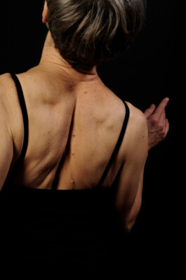 Simone Demandt gibt in ihren Fotografien den Blick frei auf das ästhetische Potential des tanzenden älteren weiblichen Körpers. Schwächeres Gewebe, Haut und Knochen als sich bewegende Materie sind selbstverständlicher Teil der Tänzerin, des Tanzes, der Kunst und werden als solche offen-sichtlich ins Bild gesetzt. Diese gemeinsame künstlerische Recherche-Arbeit der beiden Künstler*innen wurde durchgeführt im Rahmen des Stipendiums DIS TANZ SOLO von Lisa Thomas